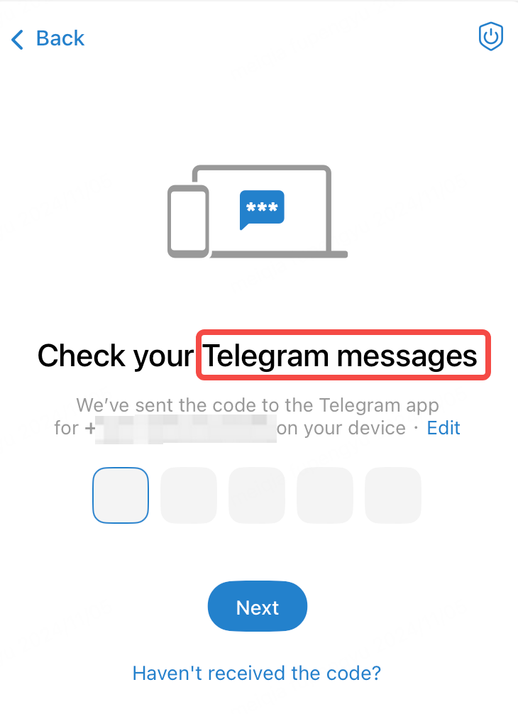 当你收到验证码后,将其输入到Telegram应用中的验证框,并点击“Next”(下一步)完成验证。如果验证码长时间未收到,请参考下方的解决方法进行处理。